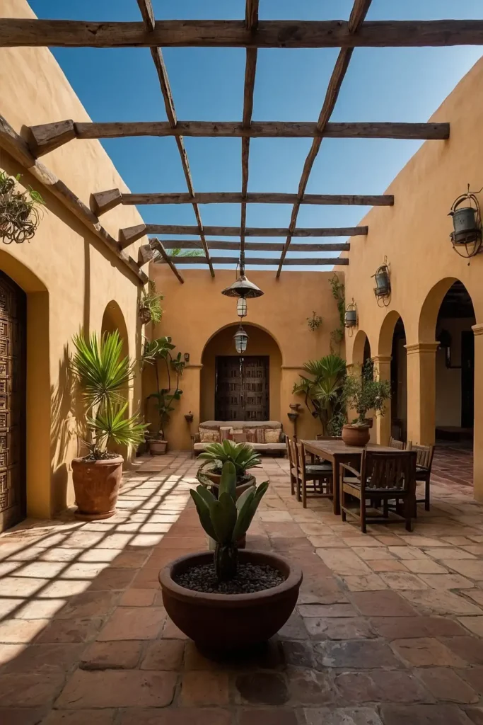 Include fountains, potted plants, and comfortable seating areas. These spaces become the heart of Mexican home life and entertaining.