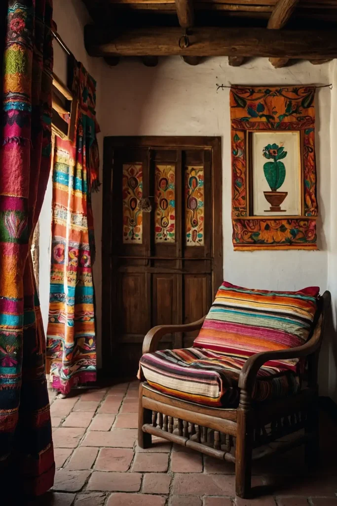 Incorporate handwoven fabrics featuring traditional patterns and vibrant colors throughout your interior spaces.