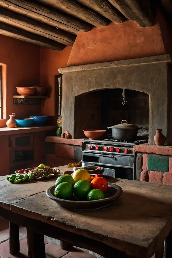 Include traditional stone grinding bowls and authentic Mexican cooking tools in kitchen design.