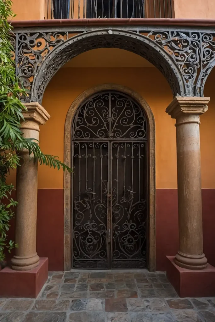 Add handcrafted iron elements to windows, doors, and balconies for authentic Mexican metalwork.