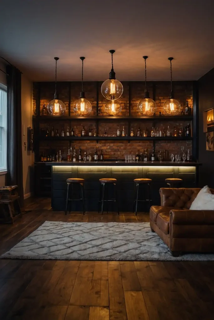 This vintage-inspired illumination complements whiskey’s warm amber hues perfectly.