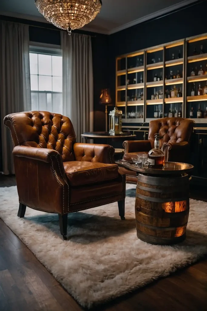 These timeless pieces anchor your whiskey lounge with sophistication and warmth.