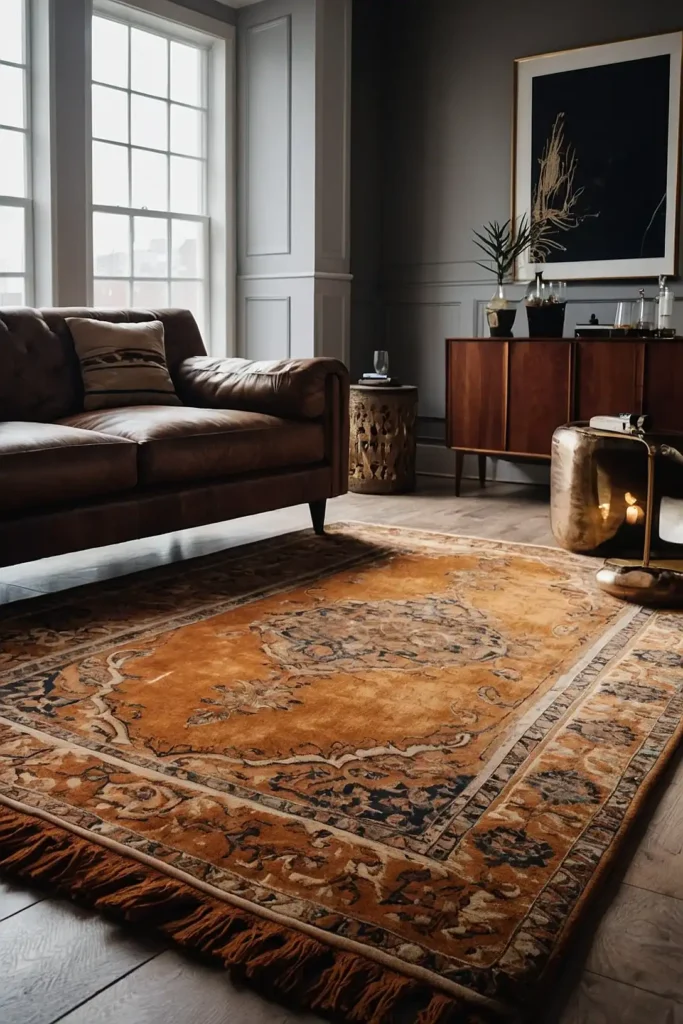 Choose colors that complement your furniture and whiskey’s amber tones. Persian or Oriental patterns add traditional elegance and sophistication.