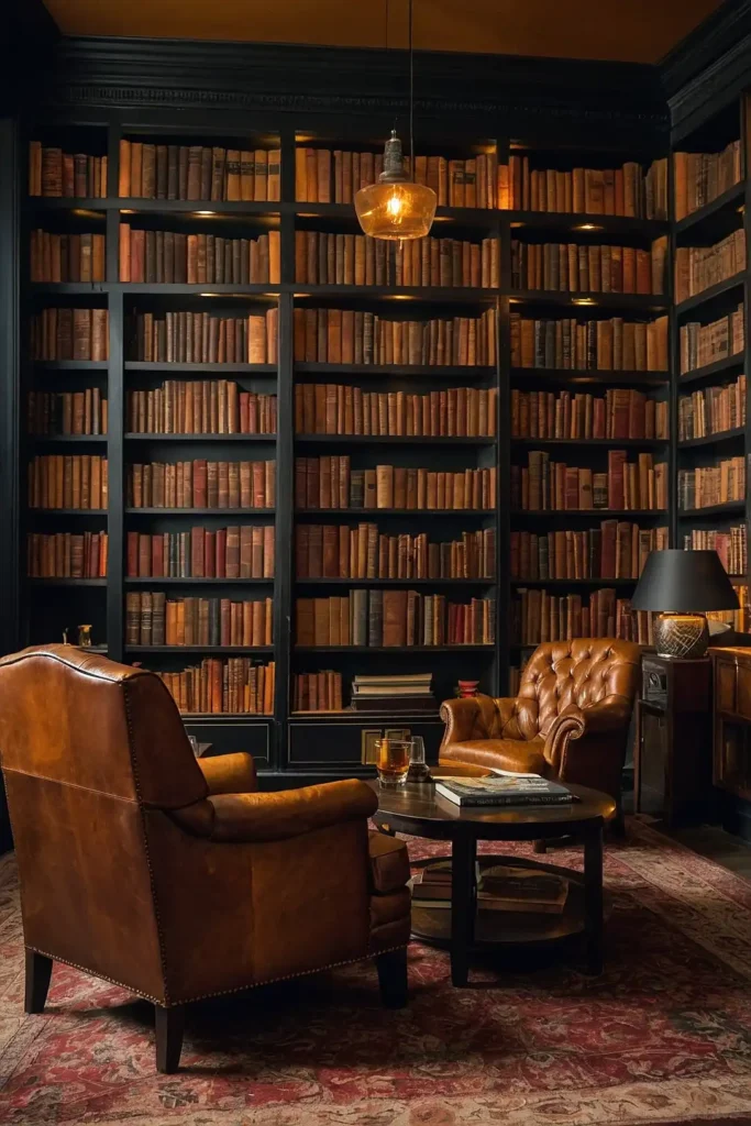 Invest in rich leather club chairs that provide comfort during long conversations.