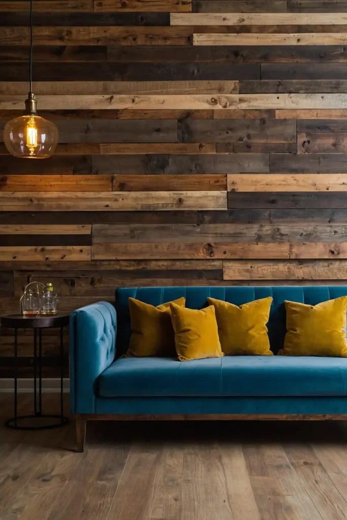 Create a focal wall using reclaimed barn wood or whiskey barrel staves.