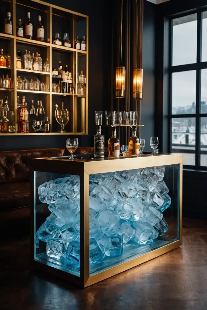 Create an elegant ice service area with crystal or silver ice buckets. Proper ice preparation and presentation elevate the whiskey drinking experience.