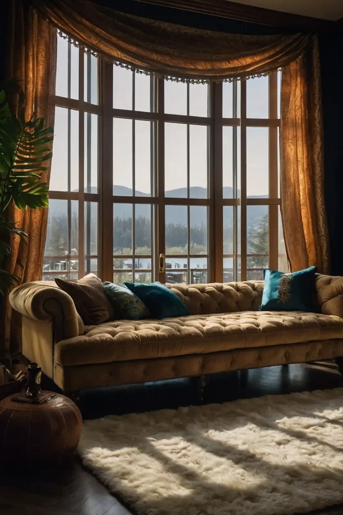 Install rich, heavy curtains that control natural light and create intimacy. Proper window treatments transform day spaces into evening lounge atmospheres.