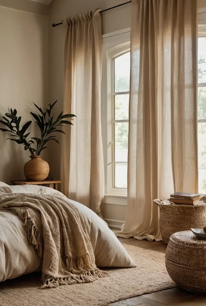 These neutral boho bedroom ideas create serene spaces that promote rest and relaxation through natural materials and calming color palettes.