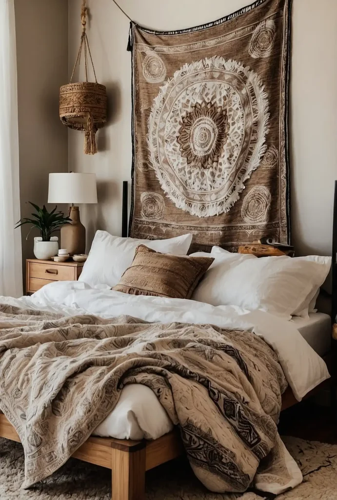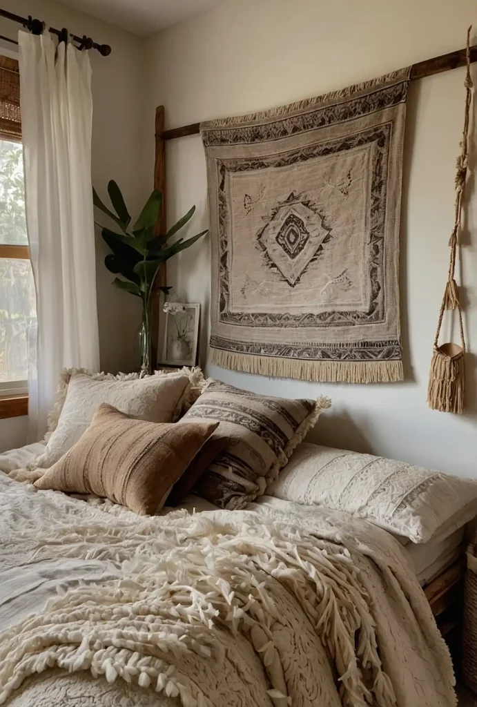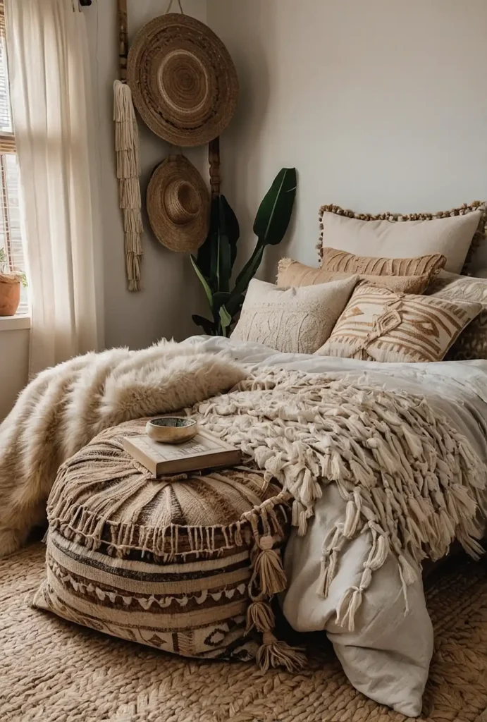 From layered textiles to natural accents, these concepts work in any bedroom size. Let’s explore stunning ways to achieve that perfect neutral boho vibe.